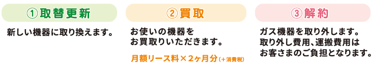 ガス機器、住宅設備機器をメンテナンス付、月々わずかな金額でご導入いただけるプランです。